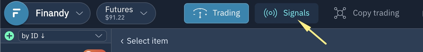 All received signals are displayed within the "Signals" tab located in the "Trading" menu under the Chart.