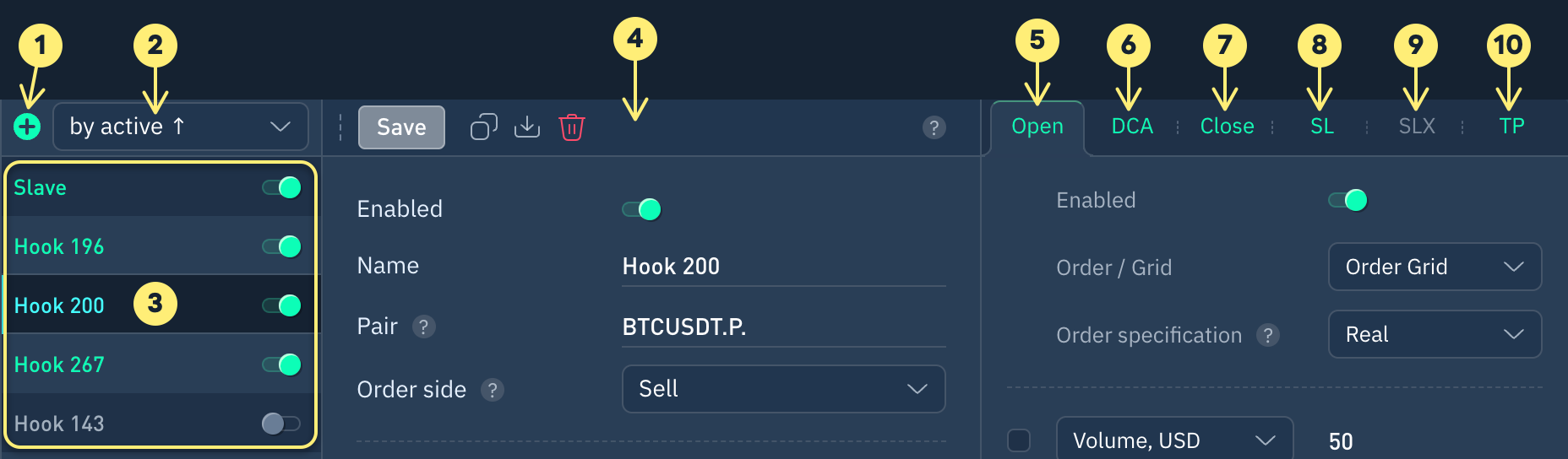 Open positionAveraging (DCA)Close / ReverseTrailing (SLX)Stop Loss (SL)Take Profit (TP)Last updated
