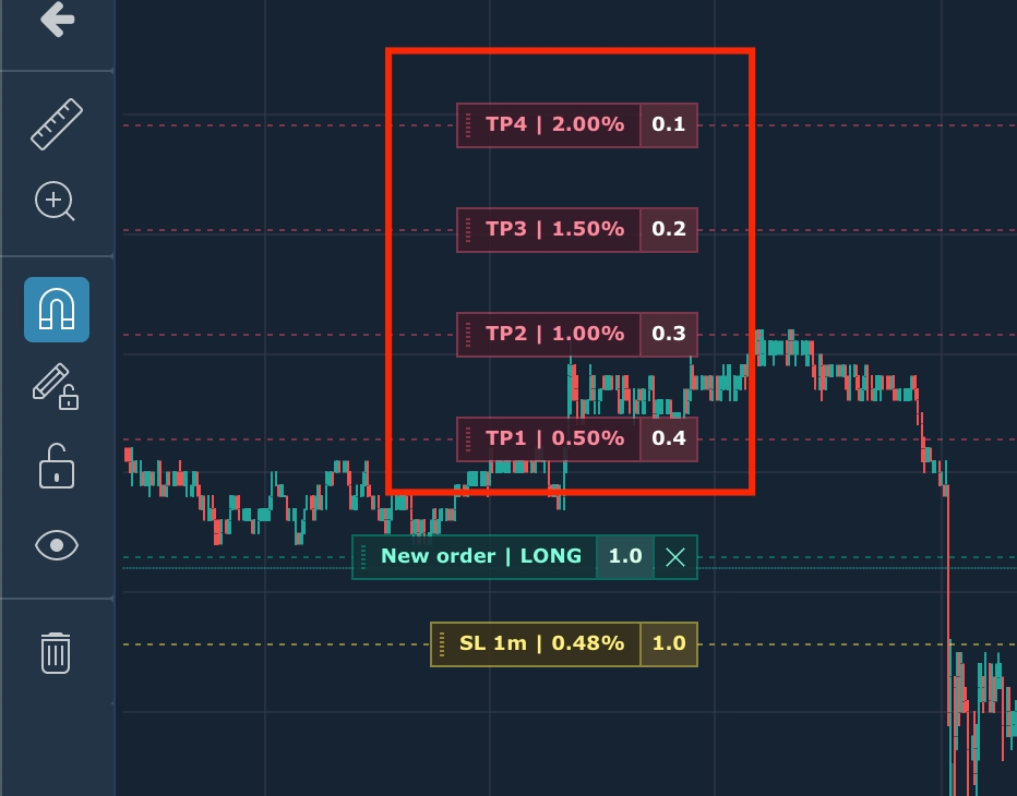 Enabling this feature automatically adds one or more Take Profit orders upon opening a position.