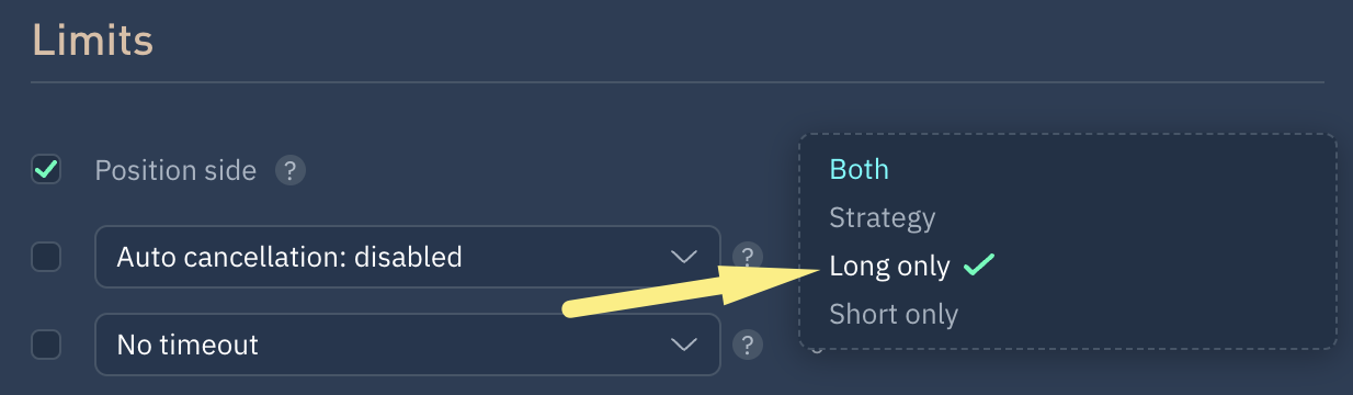 Las estrategias de la opción **PositionSide** utilizan un marcador de posición (placeholder).