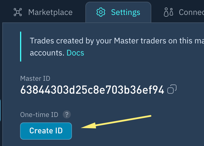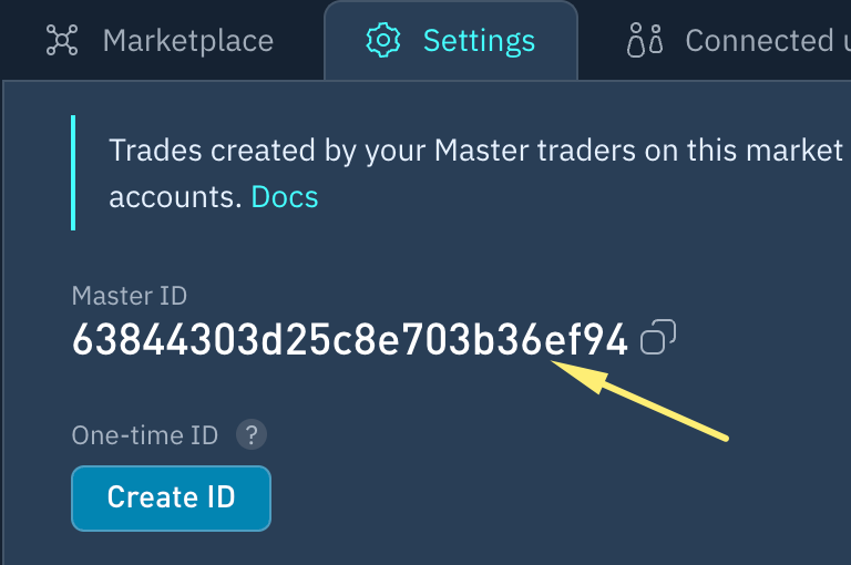 La conexión al Master Trader por ID tiene lugar en la página de configuración de CopyTrading.