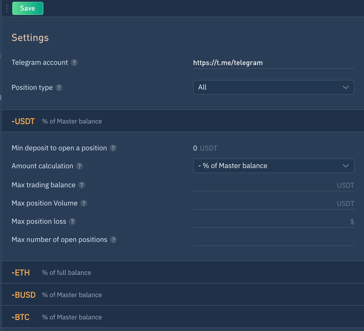 El control final de la precisión de la copia de operaciones se realiza tanto por el Master Trader como por el usuario conectado. Situaciones que pueden causar desincronización incluyen cambios en las reglas de operación del exchange socio, falta de respuesta de la API del exchange socio o actualizaciones de la cuenta sin realizar. Si una situación contradice la estrategia de trading del copiador, pueden ocurrir actividades que no coincidan con las acciones del Master Trader (por ejemplo, cerrar, reducir o aumentar posiciones).