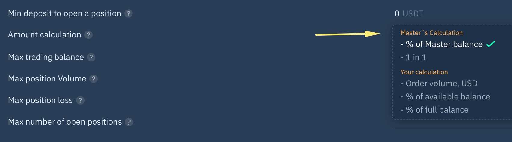 El límite lo establece el Master Trader. Las nuevas posiciones se copiarán si su saldo es superior al límite especificado.
