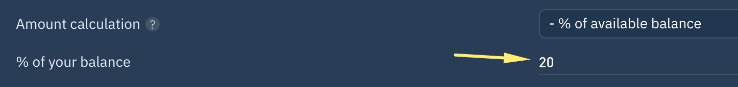 La orden de apertura se calcula como un % del saldo disponible de la persona vinculada.