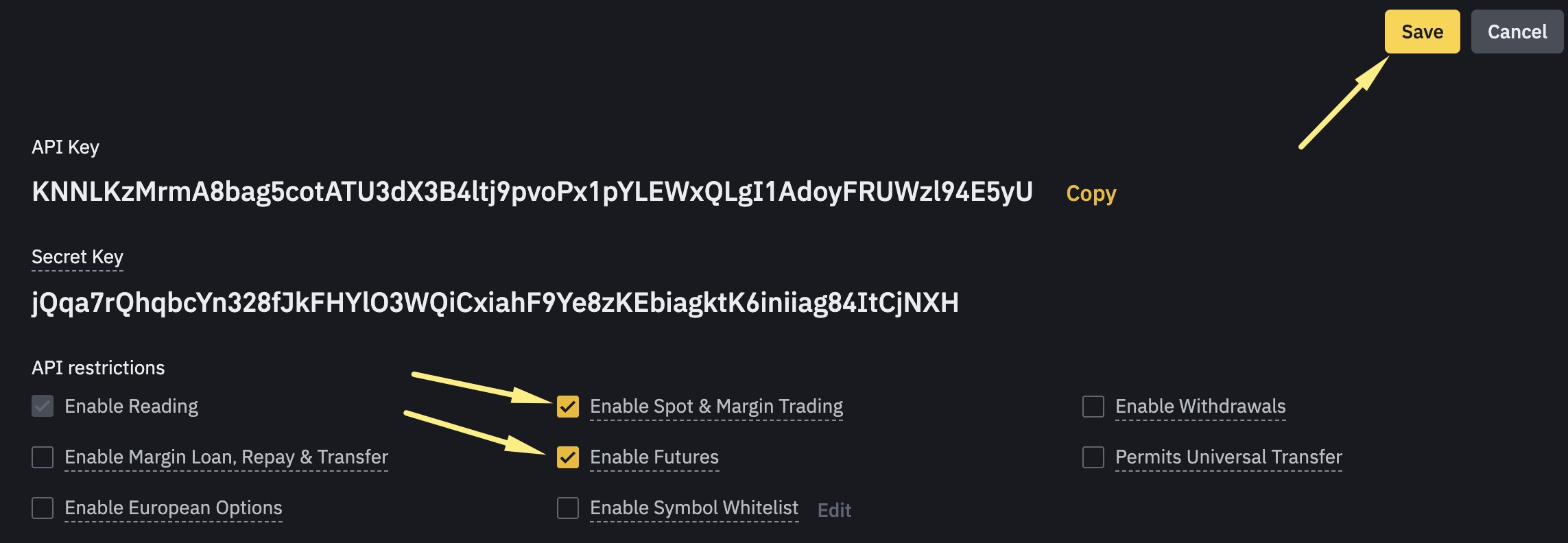 6. Copie la clave API y la clave secreta.