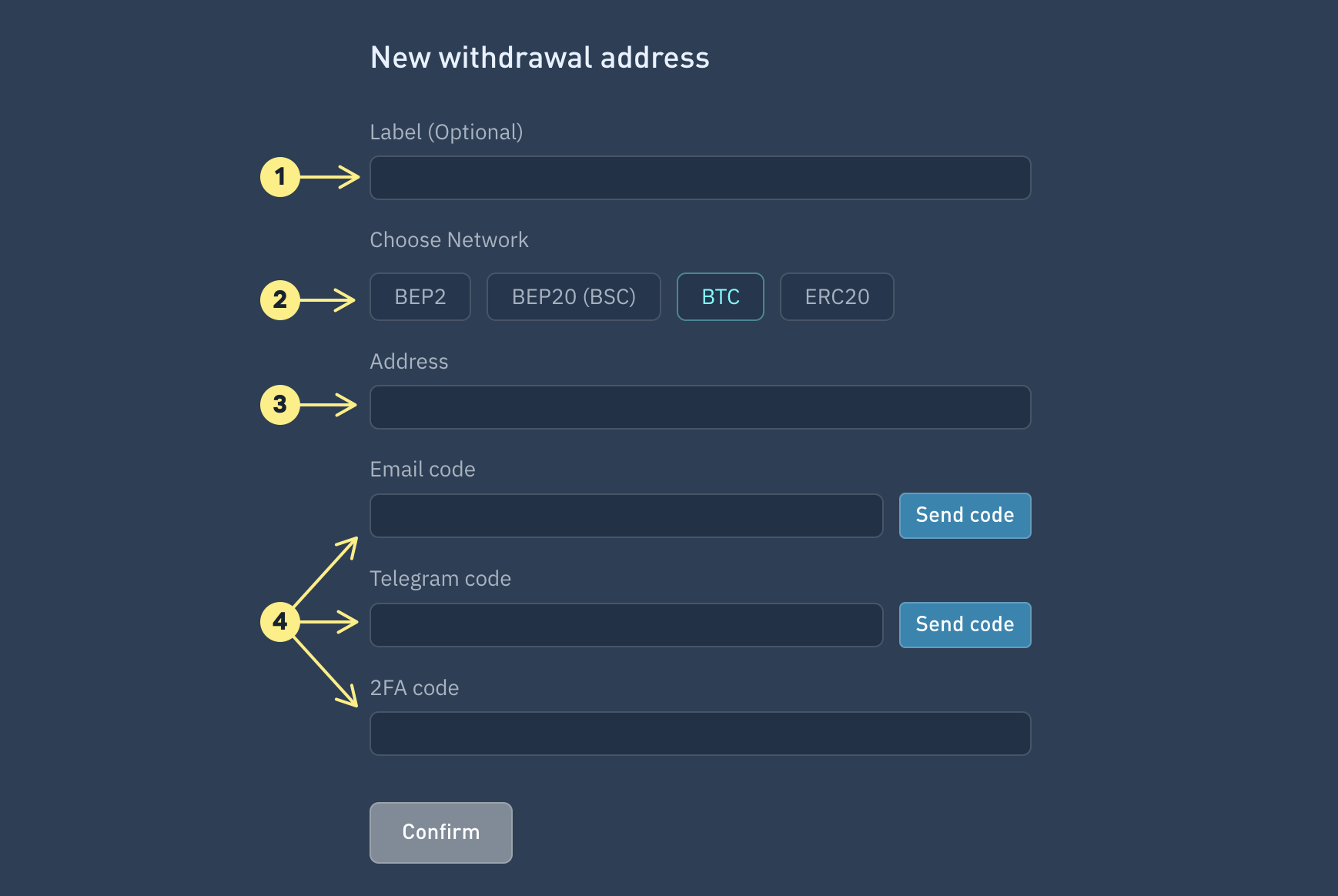 4. Una vez creada la dirección, sólo tiene que introducir el número de fichas que desea retirar, introducir los códigos de seguridad de las aplicaciones y confirmar la transacción.