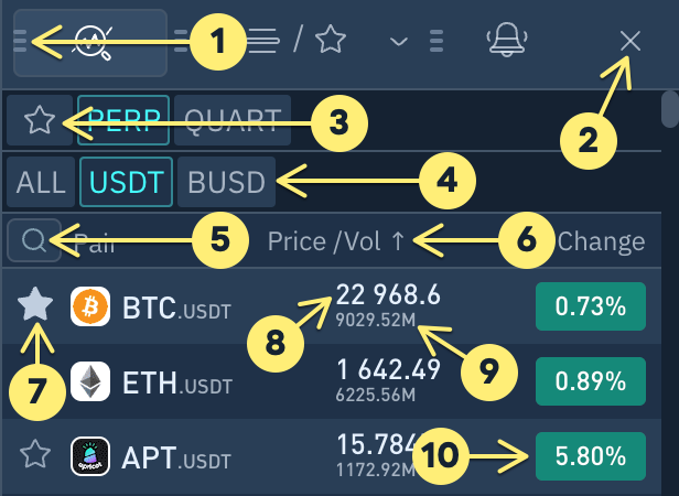 ✔ Aprende a gestionar un bloque de instrumentos de negociación en la plataforma Finandy: añadir a favoritos, filtrar, ordenar y buscar por nombre. Guía detallada para trabajar con tickers de pares de