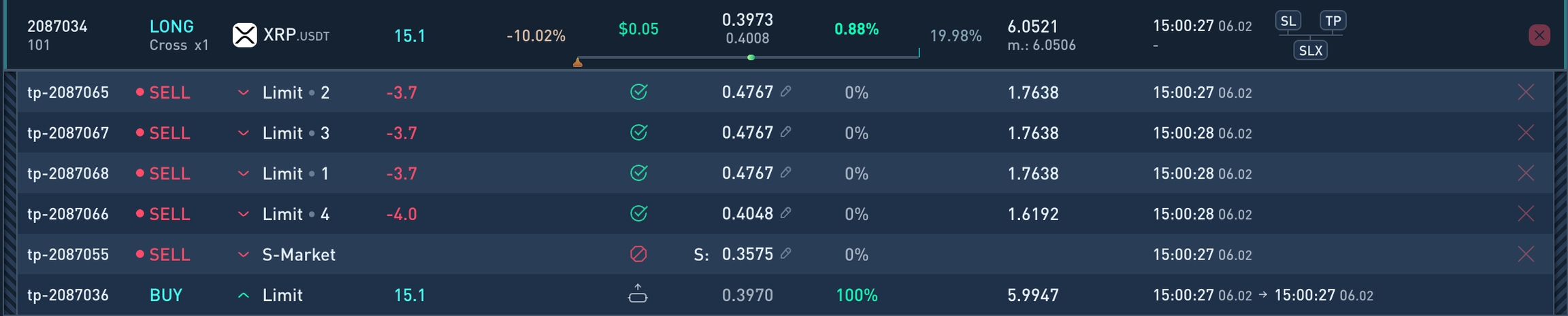 Cerrar una posición con una orden de cierre = el número de tokens en la posición. Las órdenes no ejecutadas serán canceladas.