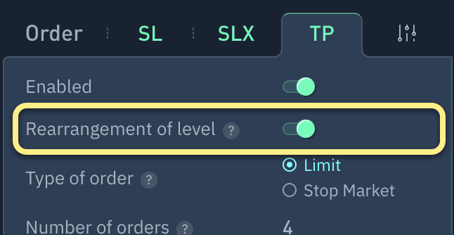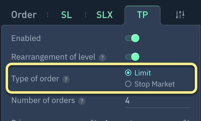 1. Pestaña Take Profit (TP) en el formulario de orden