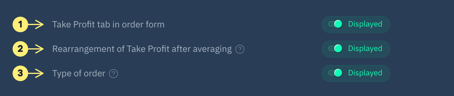 Ocultar o mostrar el módulo Take Profit en la interfaz de trading.