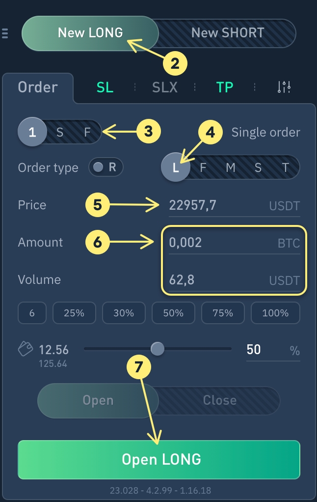 Haga click en "Abrir LONG" o "Abrir SHORT"