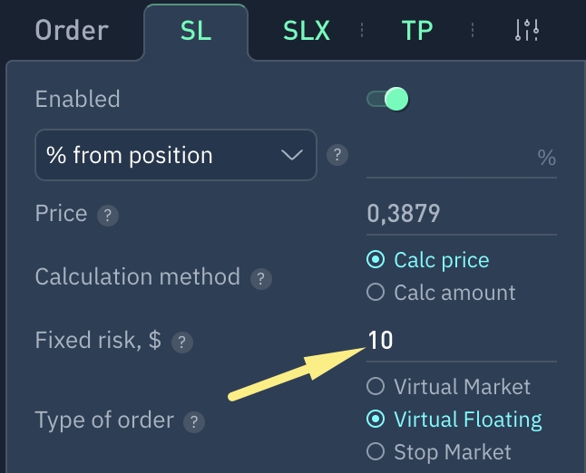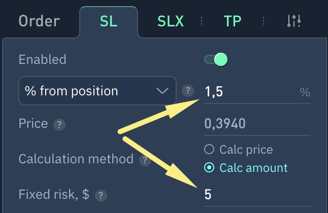 Si rellena este campo, se calculará el nivel de SL y si la posición se cierra en Stop Loss, la pérdida será igual al riesgo especificado.