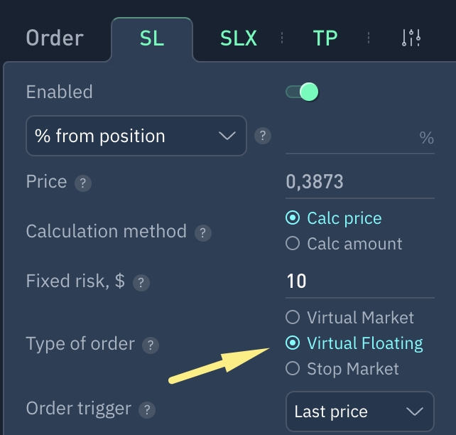 Vela de 1 m, vela de 3 m, etc. El primer valor es el marco temporal de la vela. Si la vela de activación cierra a un precio igual o inferior al nivel de SL para la posición Long, el Stop Loss cerrará la posición. Para posiciones Short, la lógica es inversa - el precio de cierre de la vela será igual o superior al precio del SL.