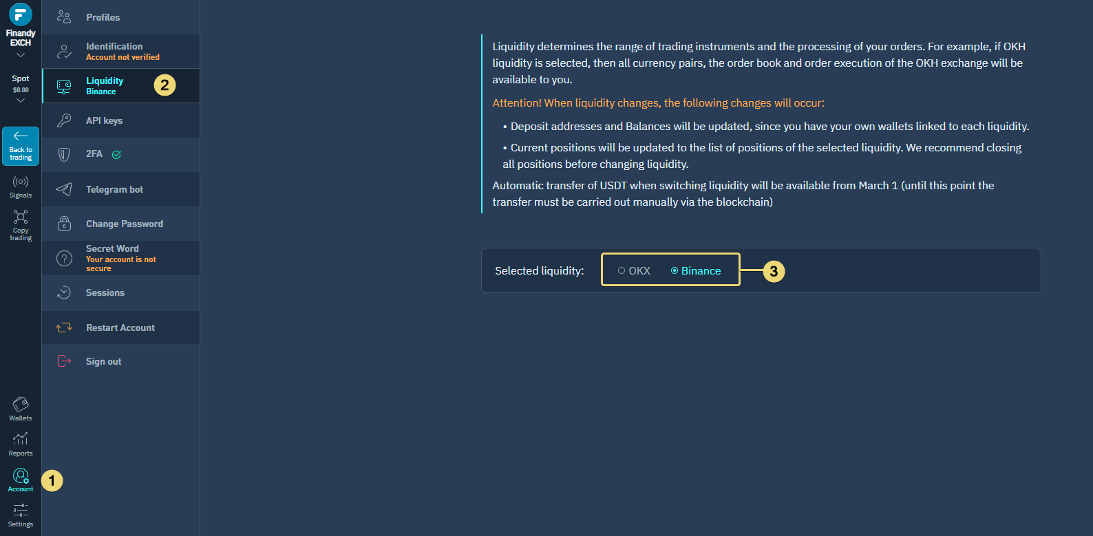 3. Automatic transfer of USDT balance when changing liquidity will be available from March 15th (before this date, the transfer must be done manually through the blockchain network).