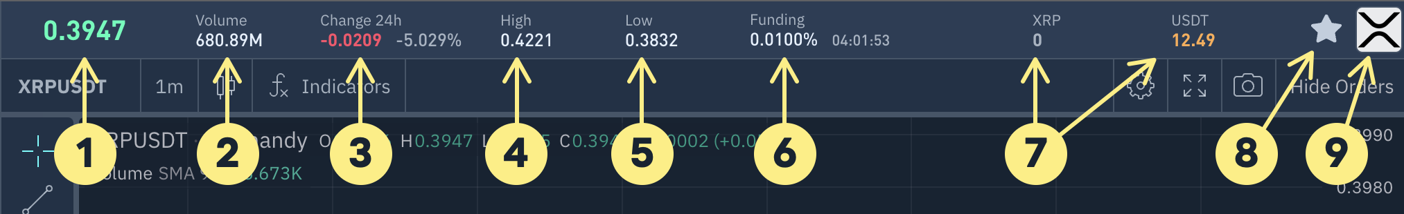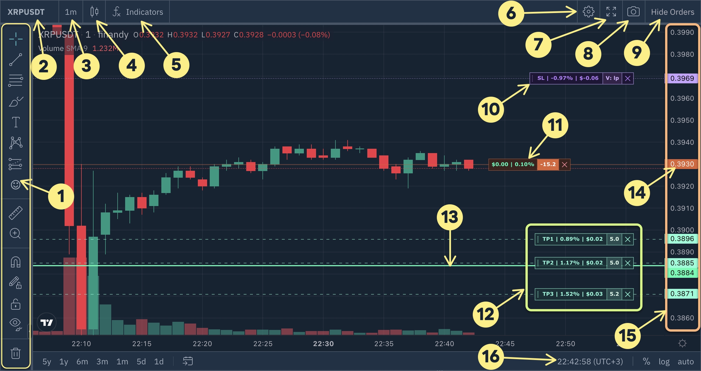 Interval (timeframe or candlestick size) for selected pair. You can set the interval by entering numbers from the keyboard.
