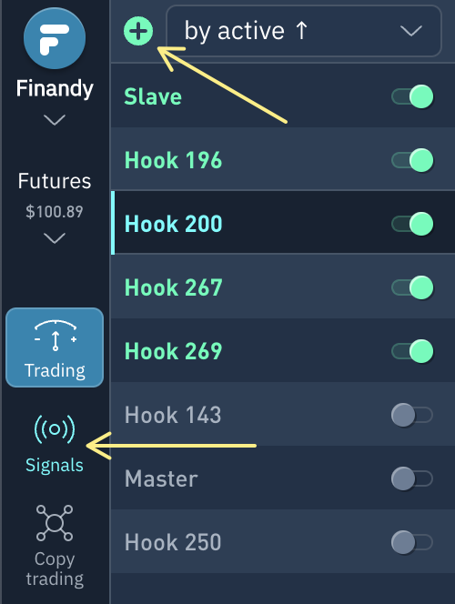 Создайте подключение сигнала (веб-хука) в Finandy.