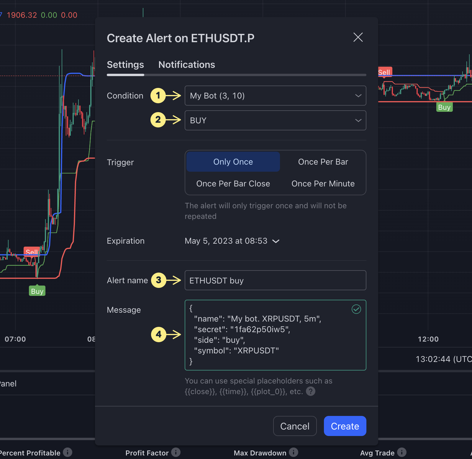 3. Назовите сигнал, например, "**ETHUSDT продажа**"