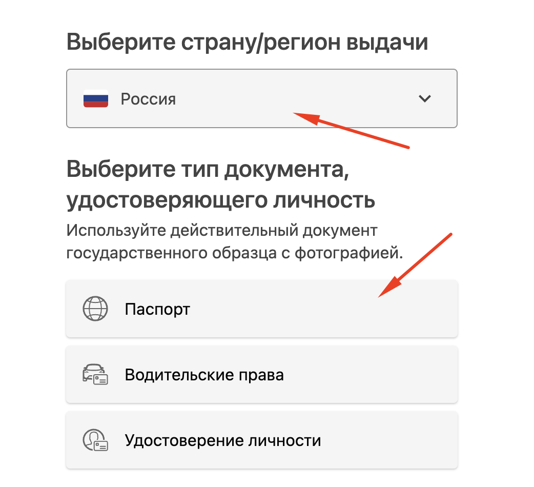 5\. Выберите страну выдачи и тип документа.