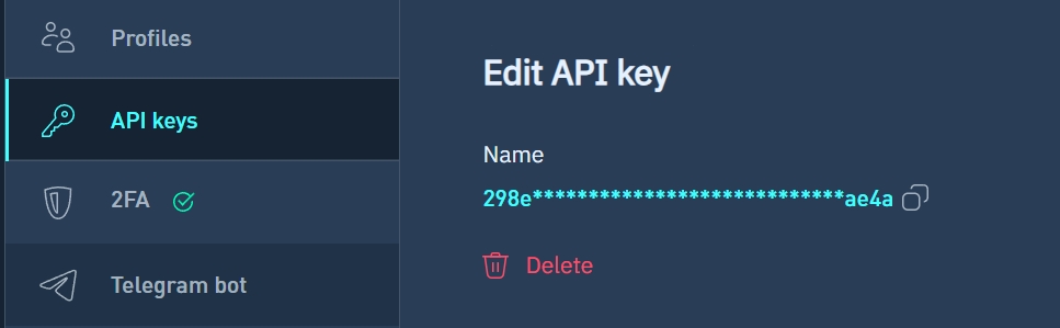 Удаление API-ключа