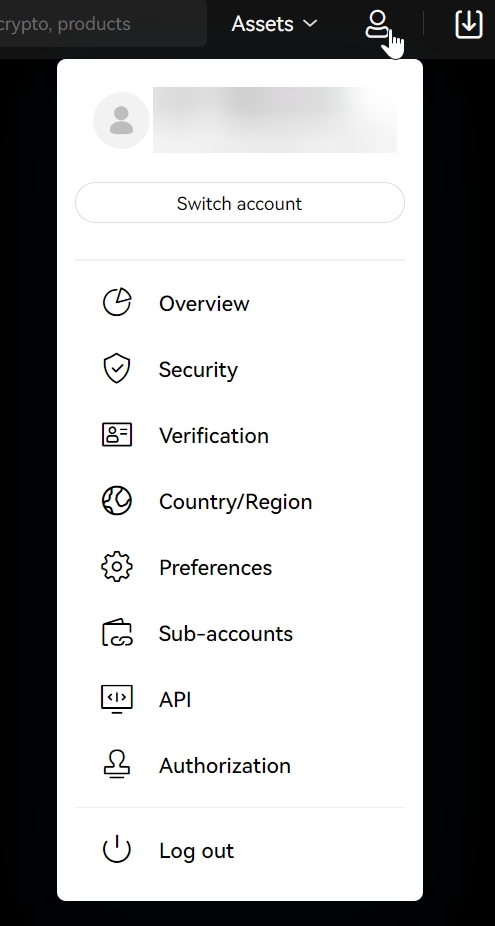 Войти в ваш аккаунт биржи OKX и выбрать Аккаунт - API