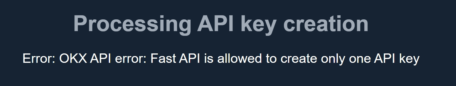 Processing API key creationError: OKX API error: Fast API is allowed to create only one API KEY