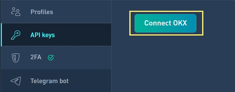 5. Нажмите на кнопку "Подключить OKX"