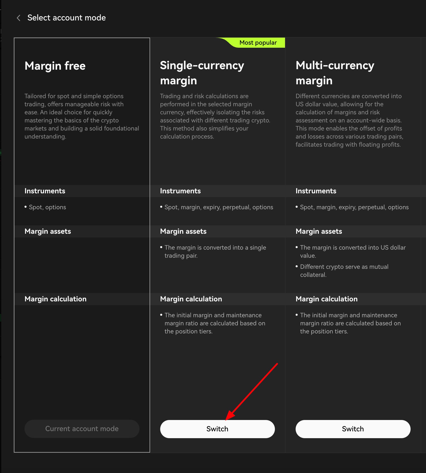 Перейдите на фьючерсы (Futures) по ССЫЛКЕ и нажмите кнопку "Update to trade" и в открывшемся окне нажиме кнопку "Switch" (как показано на картинке ниже):