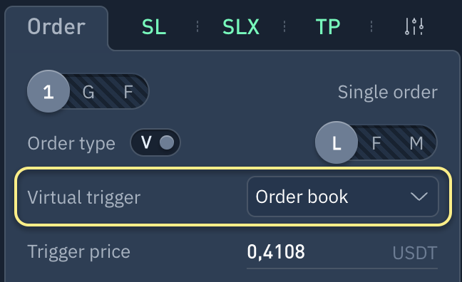 Логика работы срабатывания триггера аналогично Стоп ордеру, то есть реальный ордер разместится в книге ордеров при пересечении триггерной цены.