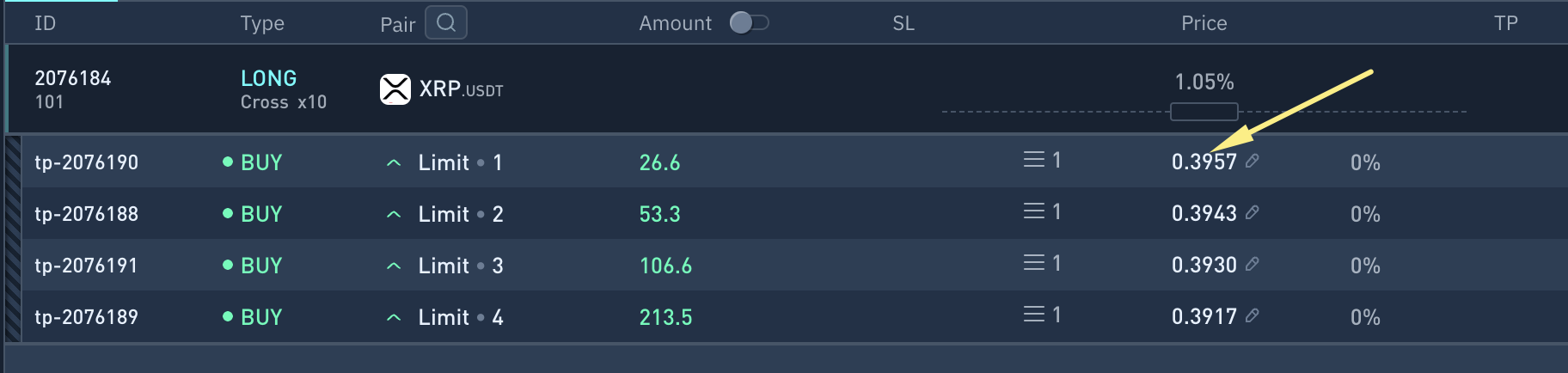 Adjusting position order price