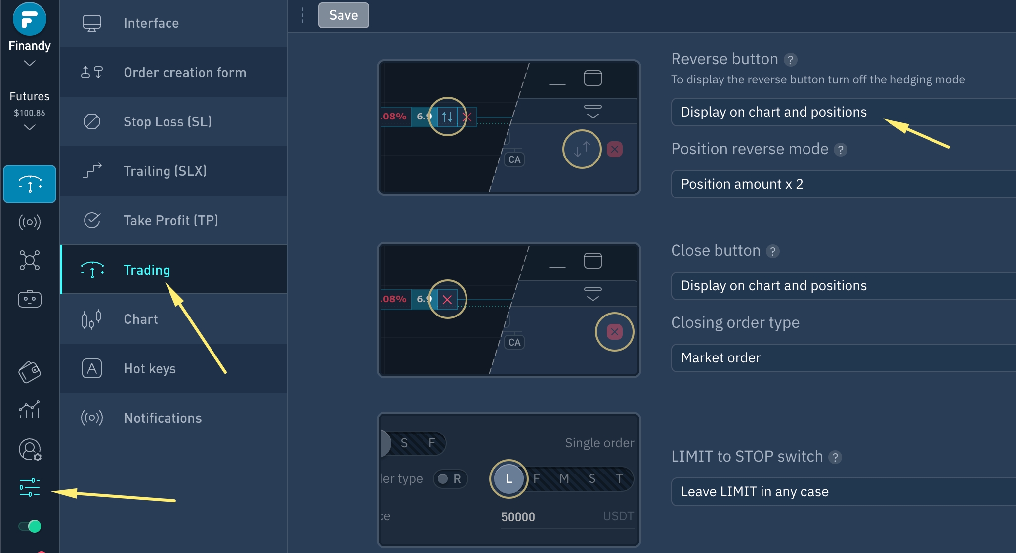 Adjust "Reverse position" button visibility in "Settings/Trading".