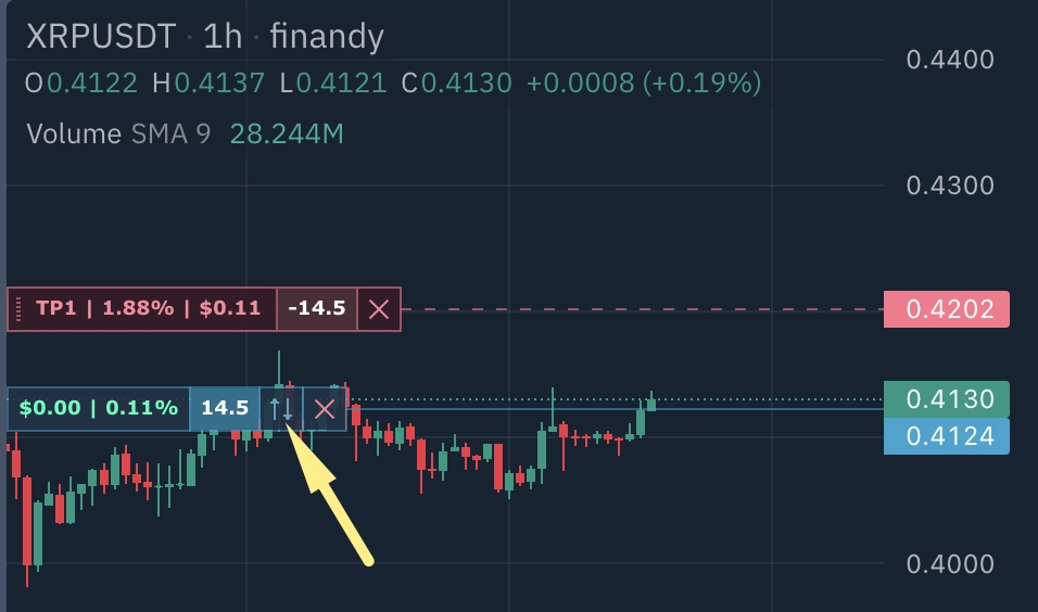 Open currency pair chart to add tokens to an already opened position. Clicking token name in opened position row opens corresponding currency pair chart as well.
